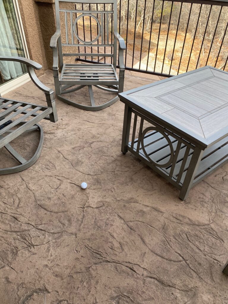 Today, I woke up and looked out onto my private deck outside my desk and saw a strange white object staring at me, in the middle, near my deck chairs, cushions removed for the winter.  It looked like a golf ball.  I wiped my blurry eyes, took a couple more sips of that soothing warm Java, and looked out again.  It was a white golf ball, a Top Flight XL 1, in fact, staring at me as if to say, here I am sir. Now, you need to figure out how I got up here on your deck!” So, I stared at this tricky surprise for a while and he stared at me too, immobile, and mocking me, it seems. Now I don’t remember if I hit a Top Flight XL1 back then, so I have no proof it was my ball.